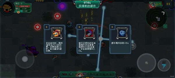 中期应优先挑战距离出生点较远的第三个 Boss。击败后游戏进入后期阶段,敌方单位数量会显著增加,需谨慎应对群体攻击,但同时可获得大量零件奖励。
