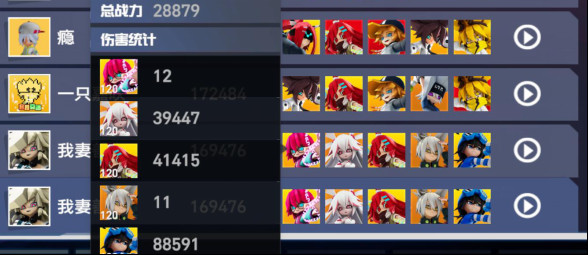 这里我借助了公会成员(我妻善逸)的120级账号做了测试,由于她的账号里面呆毛姐弟的练度较高,为贴近更多人的实际情况我卸载了艾比和埃米的零件(零件卸载前后属性如图,左为卸载零件后的参与测试的属性)此外也卸载了紫堂的零件(法师辅助在这关不需要什么属性,能活着就行)