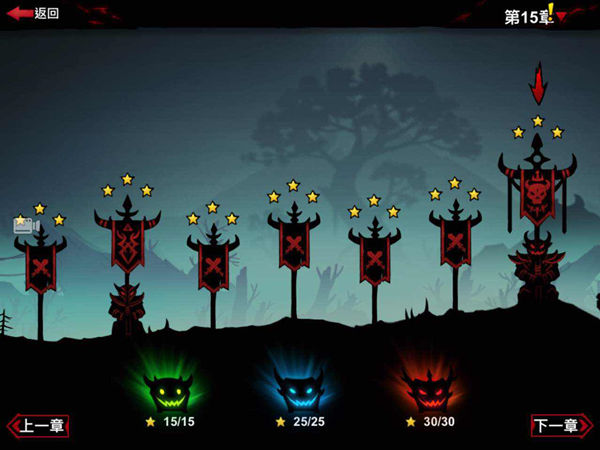 3、在整体界面右侧,玩家可以找到恶魔宝箱。恶魔宝箱其实就是游戏中出现的奖励。奖励只能通过每次通关之后获得的火柴来开启。宝箱按照从低到高分为一星,二星和三星。