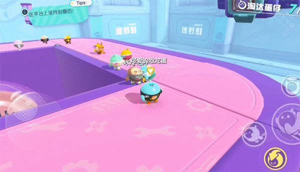 除了最基本的跑跳飞扑以外,我们还可以使用一个类似技能的“滚蛋”模式。激活后蛋仔就会变成圆球向前滚动,速度快,可跳跃,但是碰撞后会发生较大的反弹,所以建议大家在障碍物不多的时候使用。比如竞速赛中的直道,或是用于快速通过机关地板。