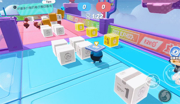 1、巧用道具运箱子,干扰对手夺胜机比如在搬箱子这种积分赛中,场地会有一些道具可以让我们进行高段跳跃,为了胜利,这种时候我们要快速布置道具,让自己和队友都能快速搬运方块得分。