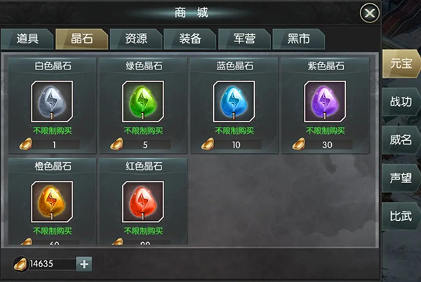 过关斩将的星数达到27以上还可以使用威名兑换大量晶石,不同颜色晶石需要的星数不同