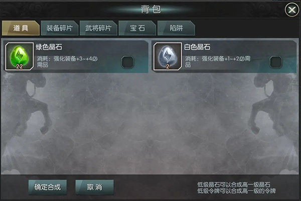 装备的强化:初次强化的时候,需要的强化材料是强化石和白色晶石,后续强化需要的晶石等级会逐步提升