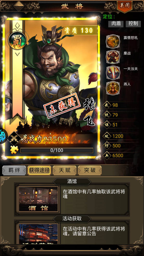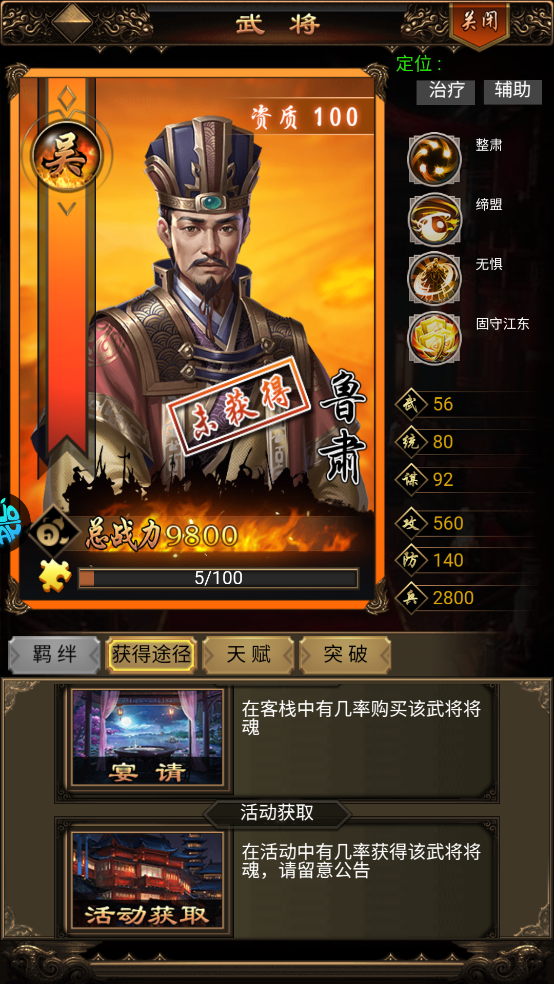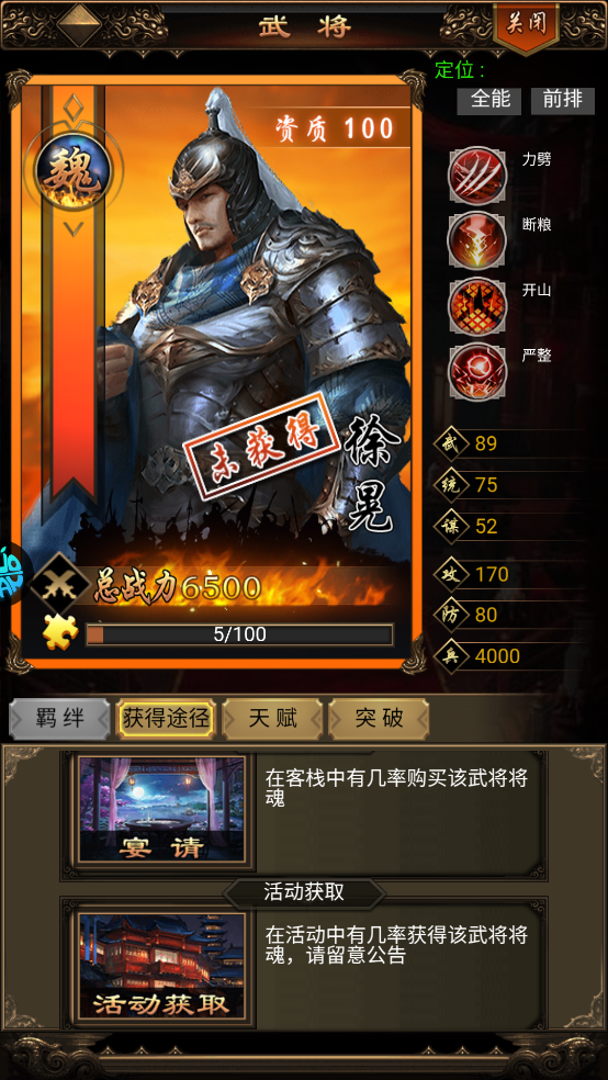 获取途径:拜访、酒馆、宴请、活动获取