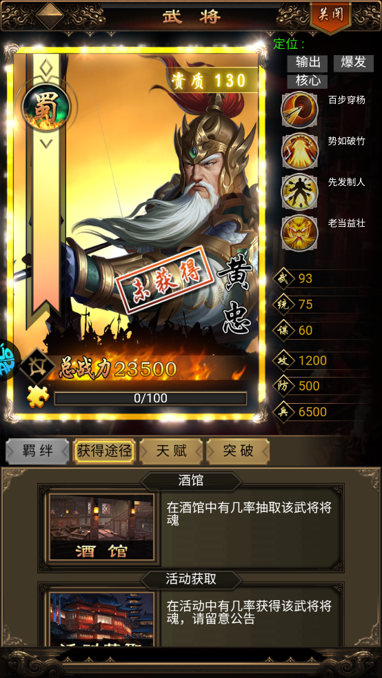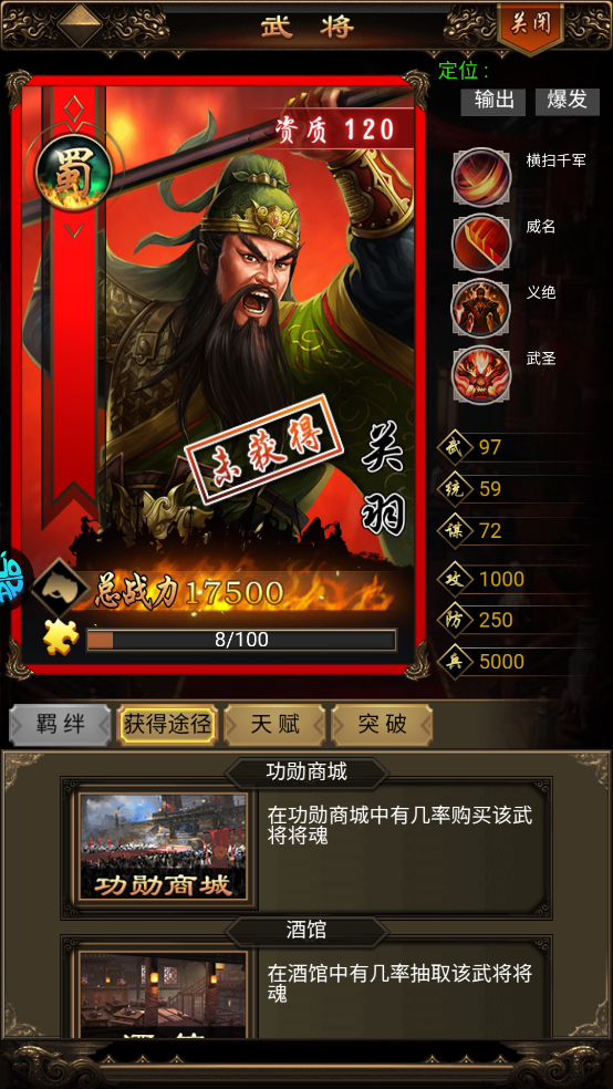 获取途径:功勋商场、酒馆、宴请、活动获取