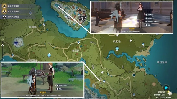 2、接下来可以先初步探索一个地区(开完传送锚点)后,顺路做做任务,开开宝箱。但不建议弄太久,等级差不多了,就可以继续推进主线(魔神任务)了,因为主线任务会带着你开图,余下的地方可以以后再慢慢探索