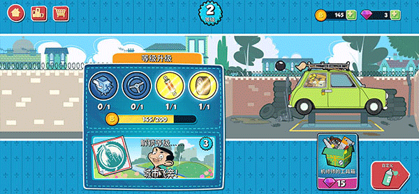 个性化装饰车辆:使用油漆、车轮、车顶装饰物和车尾升级等配件,个性化定制憨豆先生的绿色古董车。收集这些配件还可以解锁特别奖励。