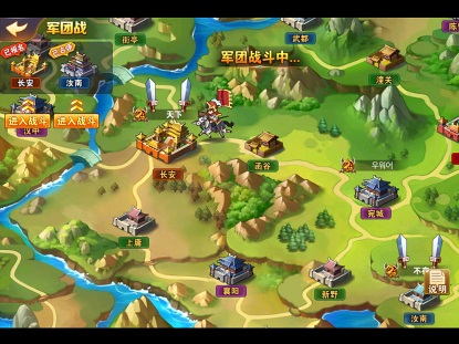 满足条件军团的团长和副团可以在世界地图里选两个计划拿下的城池,普通玩家也可以通过点击城市图标来了解城市防御、报名及开战时间、当前报名状况以及占领收益等城市信息。