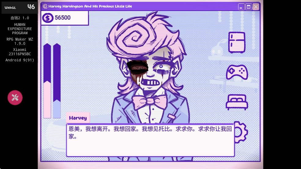结局1:哈维受不了折磨,自毁程序,删除游戏,自杀。