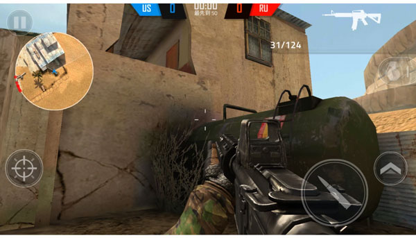 5、由于右边要进行射击,所以如果选择右边滑动屏幕来瞄准的话就会不方便,因此可以上下倾斜手机来达到瞄准的效果;