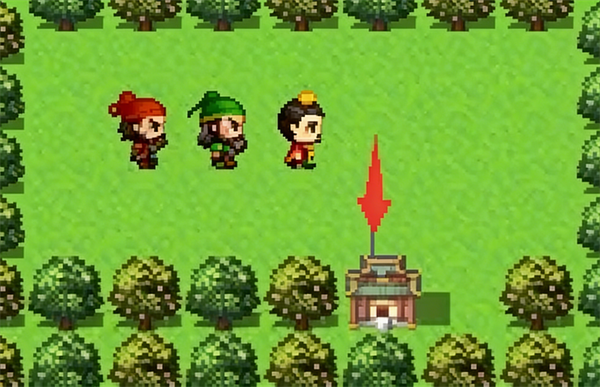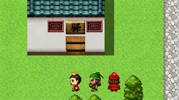 对话刘备,刘关张三兄弟就入队了,然后在对话刘母可以获得一些装备,有星星的地方都是有物品的。