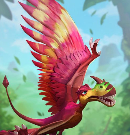 古神翼龙是种生存于白垩纪巴西的翼龙类。在体型上呈多样性,有些物种翼展长6米,每个物种有不同大小形状的冠饰。在游戏中,它五彩斑斓,张牙舞爪的样子萌态十足,当然它很厉害,古神翼龙作为小队存在的话属于不朽品质,它的秒伤能力是飞行恐龙中最强大的哦,是攻击类飞龙的不二之选。