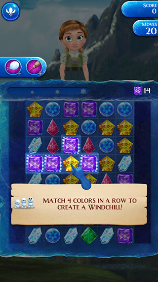 游戏为每个角色设计了独特的升级系统。例如,安娜的“火焰消除”可以烧尽整排冰晶,而艾莎的“冰雪粉碎”则可以消除所有同色冰晶。通过升级和合理使用这些技能,玩家可以在游戏中取得更好的成绩。
