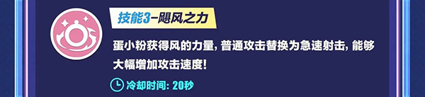 蛋小粉获得风的力量,普通攻击替换为急速射击,能够大幅增加攻击速度!