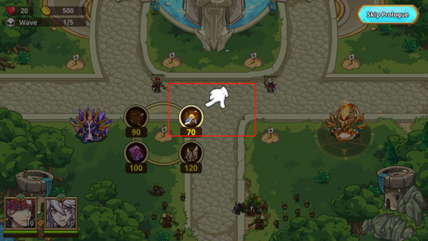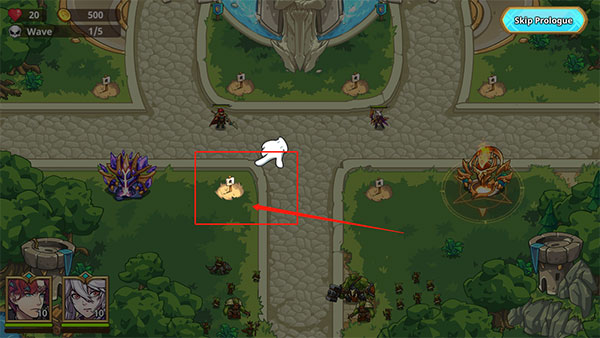 1、进入关卡之后在道路旁边会有空地,玩家点击空地即可修建防御塔