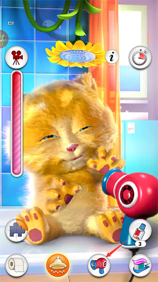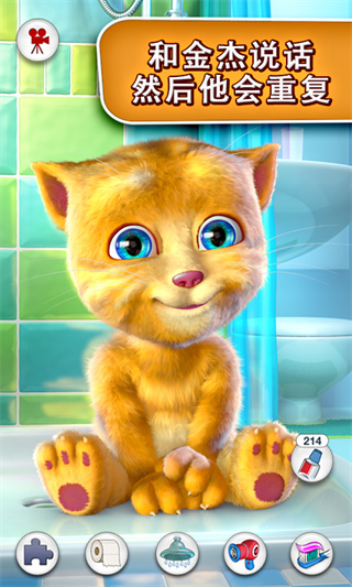 2、这是一款休闲模拟类游戏,在这里玩家可以和金杰猫说话、可以给金杰猫洗澡、刷牙、拉纸巾、录视频;