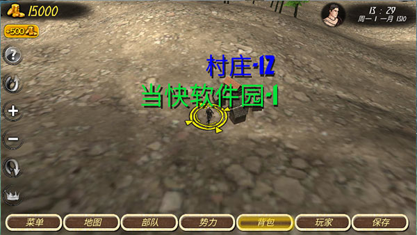 2、刚进入游戏我们会随机出现在地图上,这个时候我们没有任何士兵,身上的货币也有限,点击地图打开地图,可以看到上面有村庄以及各种城堡的所在地,名字显示为红色的是我们的敌人势力,过去后只能开战无法交易。