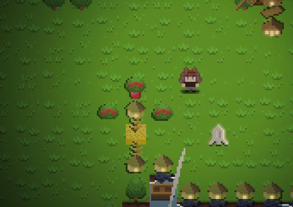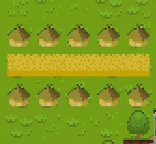 然后就开始横向发展,在农田旁边再建个田,田上下建房子,如此循环下去(谷子不够了点农田可以收谷子),最终形式如下↓