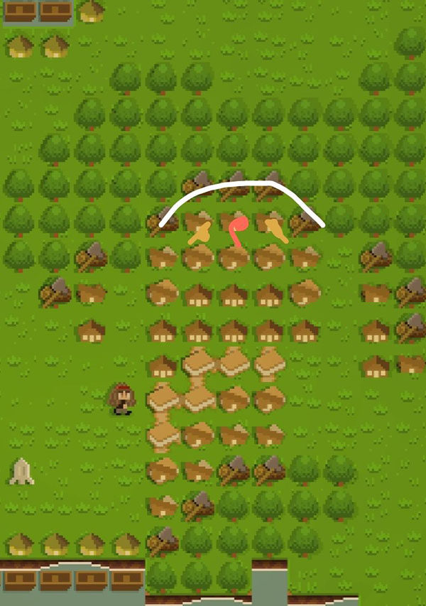 然后再浆果田中间建个房子,在房子前面建个农田(这些都是新手引导有的流程,我只提一下开场时的布局,记得用磁铁吸一下房子开启房子增加人口)