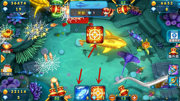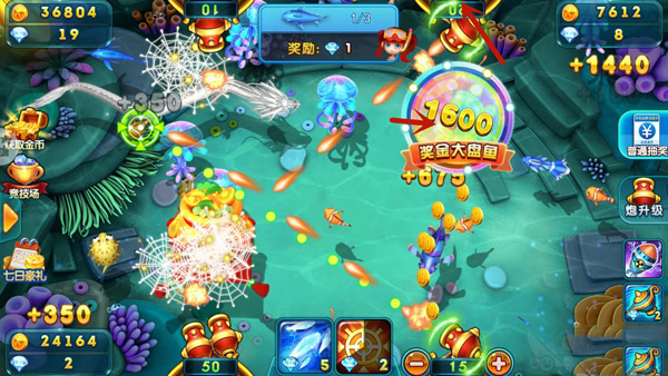 3. BOSS挑战更刺激:新增“深海龙王”“黄金巨鲨”等超强BOSS,血量更高但奖励更丰厚,千级炮台是击败它们的关键。
