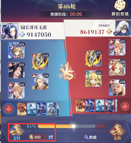 (3)首席决选自第二天开始每3天开启一次,中午12点可以竞猜前四名,晚上9点开始比赛,记得上线通过竞猜每场比赛的胜负获取大量竞猜币奖励。每场比赛赛前都可根据对手阵容来调整自己的对战阵容和站位,争取获得更高的名次和奖励
