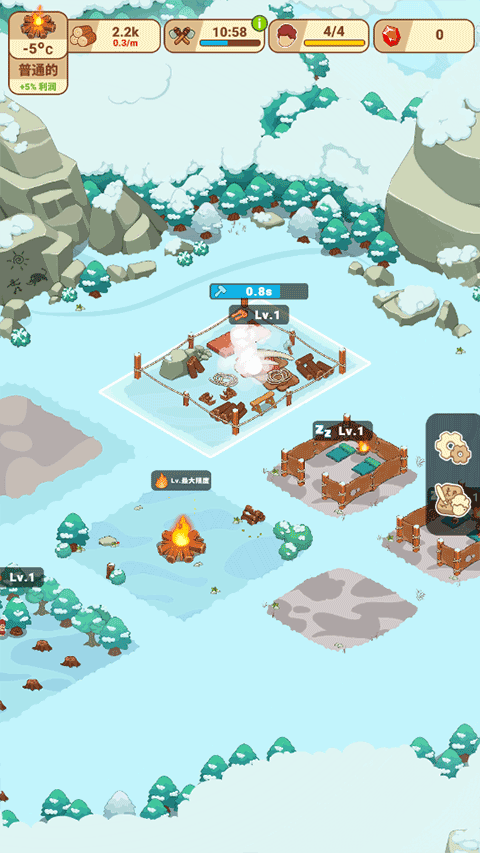 从帐篷到冰原要塞,自由建造居住区、工坊、储藏室等功能性建筑,布局影响生产效率与防御能力。