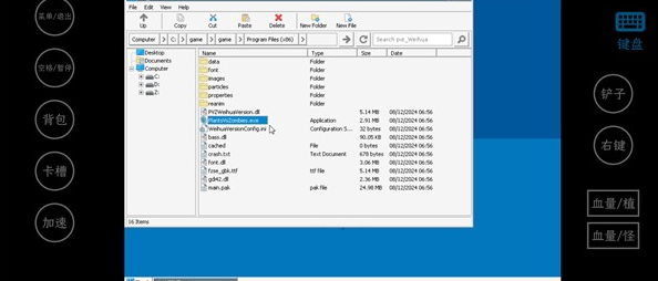 1、进入模拟器后找到C盘-game-game-Program Files (x86)-pvz-Weihua,找到PlantsVsZombies.exe启动游戏