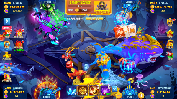炮号+倍率双重成长,刺激加倍;全区Boss钢铁帝王蟹震撼来袭,性格各异的特殊鱼与缤纷小游戏令你应接不暇。