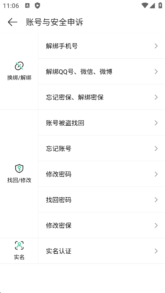 选择【账号与安全申诉】选择找回/修改功能或者是其他功能自助找回~