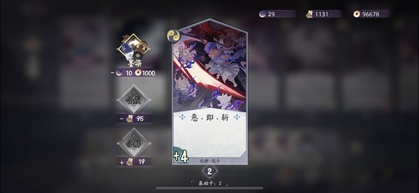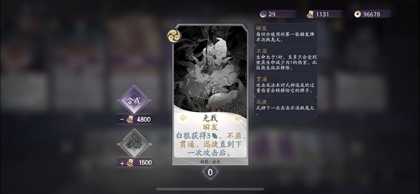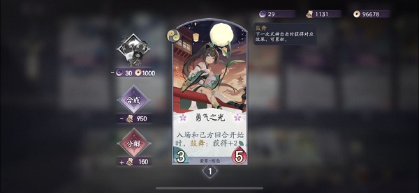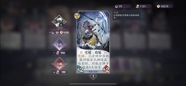 除了开卡包,御札合成也是获得心仪卡牌的主要方式,R卡、SR卡、SSR卡合成分别需要95御札、950御札与4800御札,分解则分别可以获得19御札、160御札、1500御札。