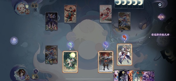 初始回合可以使随机一名式神获得免费升级,之后可以选择一名等级最低的式神进行升级。每回合有一次提升式神等级的机会。