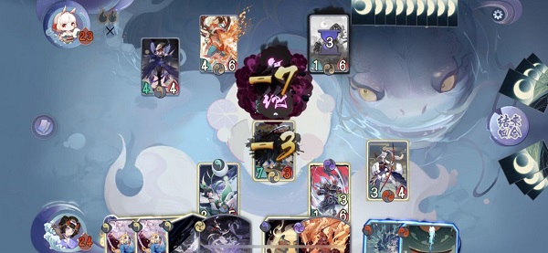 整个打牌过程围绕4V4的式神战斗展开。玩家可以用卡牌强化这些式神,提高他们的战斗力,最终将对方牌手的血量归零,或者让对方提前抽空牌库,即可获胜。