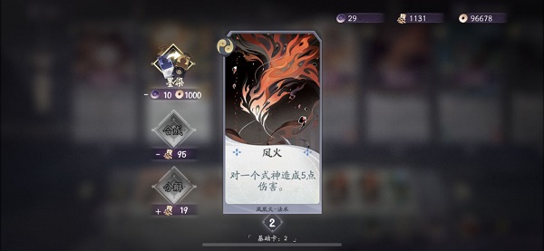 以犬神为例,”恶即斩”可以提升4点攻击后发起进攻,”心斩”可以获得2点护甲后发起进攻,而”守护”不仅可以主动使用,在敌方回合时若我方式神受到攻击,消耗所需鬼火后还能够自动从手牌发动。