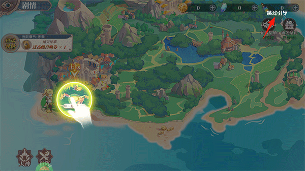 2、点击右上角跳过游戏剧情;