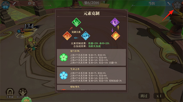 7、点击右上角的五叶草,可以查看元素克制关系,帮助玩家更好理解游戏内容和战斗方法;