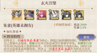 以四圣之一的南方圣灵-朱雀为核心,降低目标防御的同时,狴犴可以嘲讽目标,吸引敌方攻击,同时为自己提自己叠加攻击加成,供免伤加成,蟠龙再提供破甲效果并阻止目标复活,虎蛟提供冰冻控制,天狗群攻输出收割残血,最后九婴可以提供治疗和免死效果,为朱雀的攻击叠加不断提供续航力。