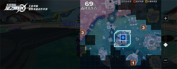 选完英雄和灵宝后,接下来就是选择出生点。如果你是一名喜欢正面硬钢的猛男,可以选择在金色高亮的区域出生,这里往往会有更多的团战和资源。如果喜欢猥琐发育,也可以在地图上选择队伍较少的区域,避免和敌人正面作战。