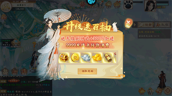 3、玩家首次上线就送金锭、银锭、充值点等等新手福利;