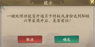 在身份比较“低”的时候,我们会发现在很多点击较为频繁的地方会有一个“一键XX”或者“自动XX”,但是当我们去点击勾选时会发现需要身份达到一定等级才可使用。