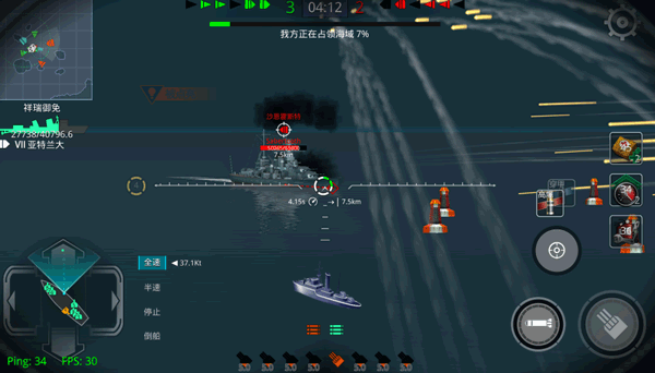 本次我所使用的舰船是亚特兰大,作为巡洋舰中的较强的金币船,亚特兰大拥有十分均衡的数值和相当不错的航速,同时还有着威力不错的鱼雷武器,在同级别中拥有较强的优势,速射炮的威力也不错,对付驱逐和潜艇效果极佳,是一艘非常不错的金币船。