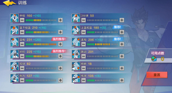近距扣篮类型,娜塔莎的加点