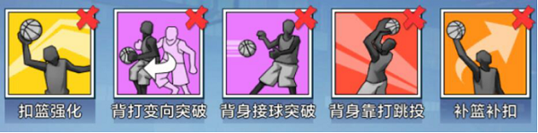 扣篮集中(被动):被动技能永远是优先选择的对象,它可以提高你的扣篮几率,让你在禁区下的得分概率大幅提升,扩大队伍优势或帮助队伍逆风翻盘。