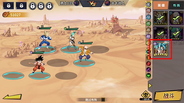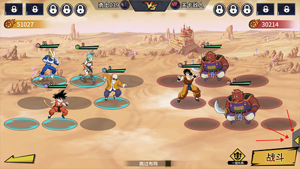 1、战斗开始前,先点击右下角安排上阵的英雄;
