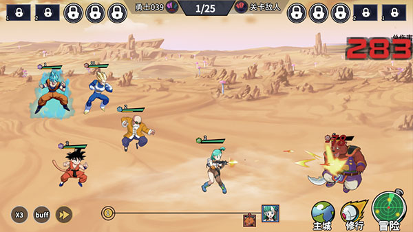 3、战斗是自动进行的,左下角可以加速,随着等级提升,可以解锁更多功能;