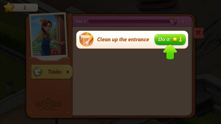 每完成一关三消谜题即可获得“星星”,用于解锁装修步骤(例如清理大厅、粉刷墙面、添置家具等)。