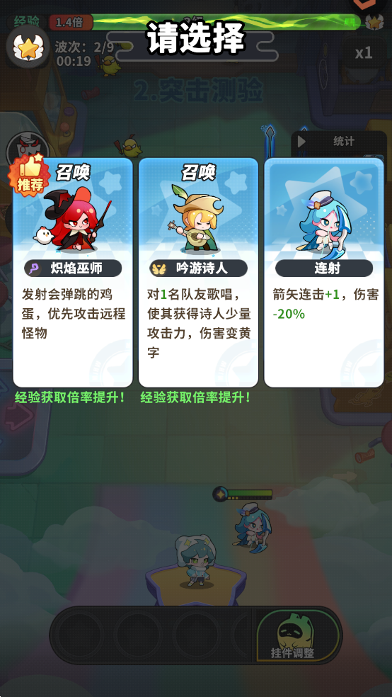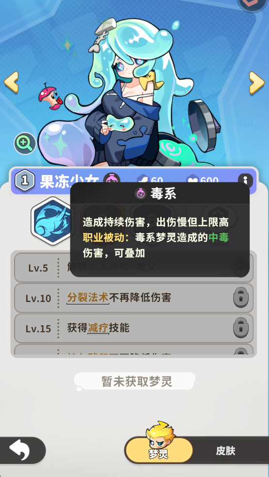 不同的精灵拥有不同的技能,获得足够的经验升级后,可以选择召唤新的精灵或者进阶已召唤的精灵