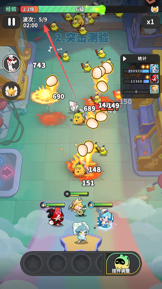 通过查看左上角的信息,可以了解对局的进度,在boss战到来之前尽快提升精灵的伤害