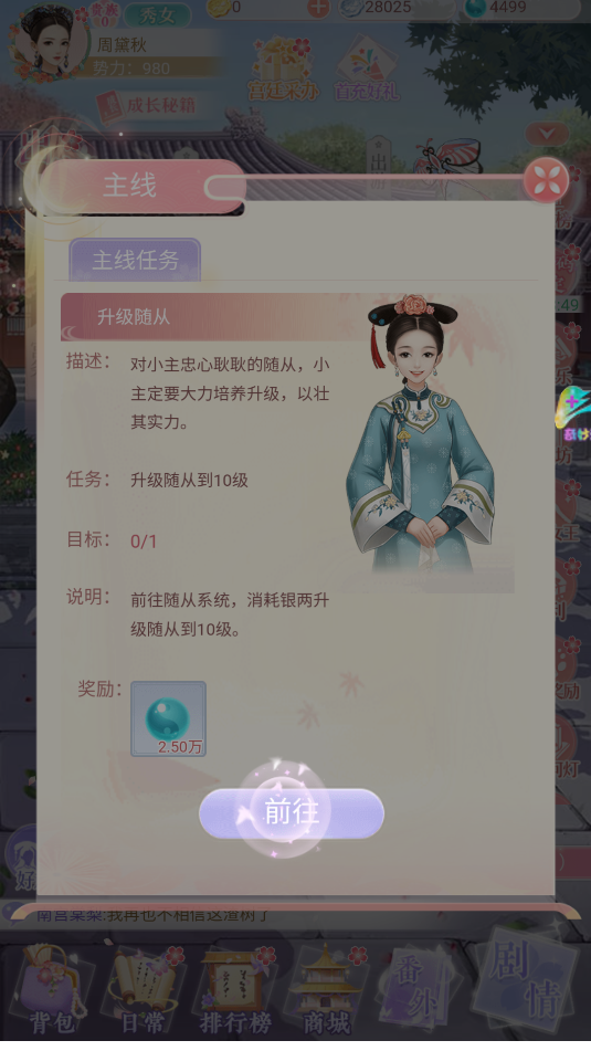 6、此外,主线任务同样不可忽视。前往主线任务页面,点击“前往”完成目标,不仅能体验扣人心弦的故事,还能领取丰厚奖励。