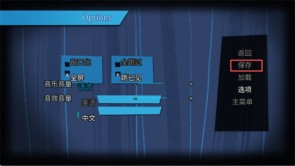 4、进入选项板块后,点击加载,选择刚刚保存好的存档即可