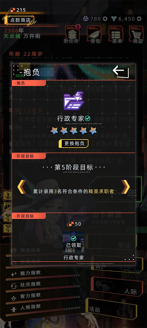 3、没触发特殊角色剧情不一定是因为属性没达标,还有可能就是单纯的运气不好。